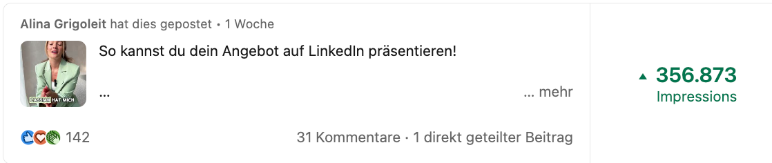 Vor einer Woche habe ich ein Video auf LinkedIn hochgeladen: "So kannst du dein Angebot auf LinkedIn präsentieren!"